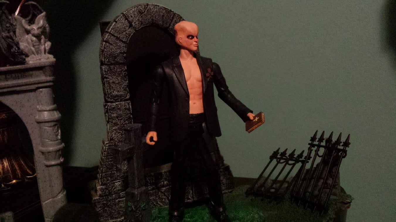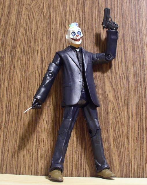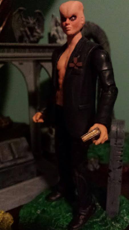Jamie: To make the figure, I used the torso of Spike from a Buffy The Vampire Slayer 6 inch figure, as well as the face of Anyanka from the same line (Yes, Ashberry’s face is that of a female). I used a Mattel Movie Master Joker Goon from The Dark Knight Rises for the arms, legs, and jacket, as well as the ears for Ashberry’s head. The hands came from a Mattel Alfred Pennyworth figure.