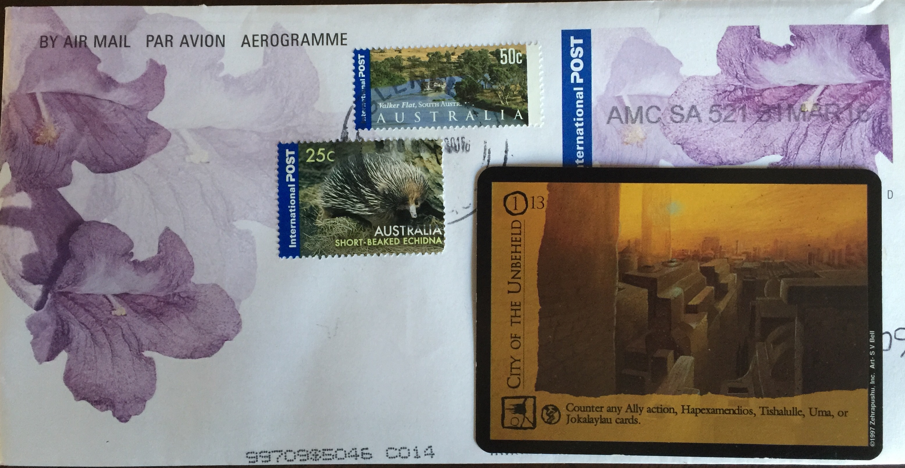 - Special Thanks to Ben Orchard (A real Imajica card player) all the way from Southern Australia for trading me the last card on my list, City of the Unbeheld!