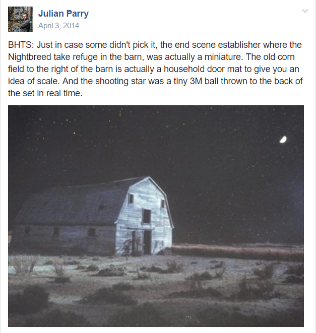 Today we have a special treat for you Nightbreed fans out there. Julian Parry of JPVFX Production Services found this paragraph in his diaries, written back in 2003, and was kind enough to send it over and share it with us. This may end up as a a potential book on the industry, so we’ll be sure to update on that as it evolves.